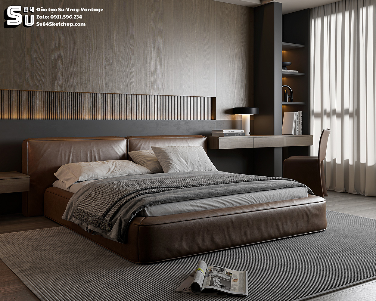 Trung tâm đào tạo Sketchup SU84 xin giới thiệu mọi người file Phòng ngủ sketchup 10 Full Setting SKetchup-Vray-Vantage gồm có 6 Scene. Mọi người có thể dùng để tham khảo cách thiết lập setting render để nâng cao trình độ của bạn, sử dụng thư viện hoặc thậm chí là lấy file công trình của bạn đặt vào để render.