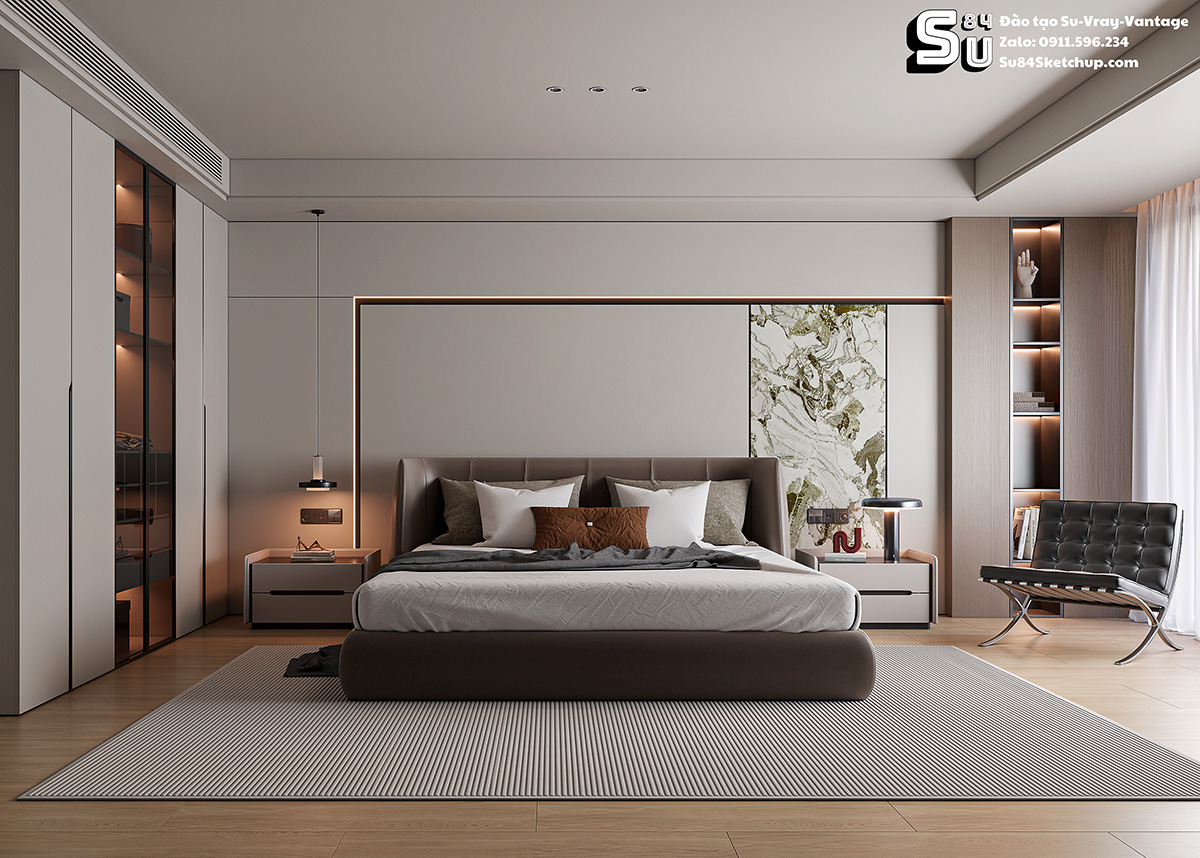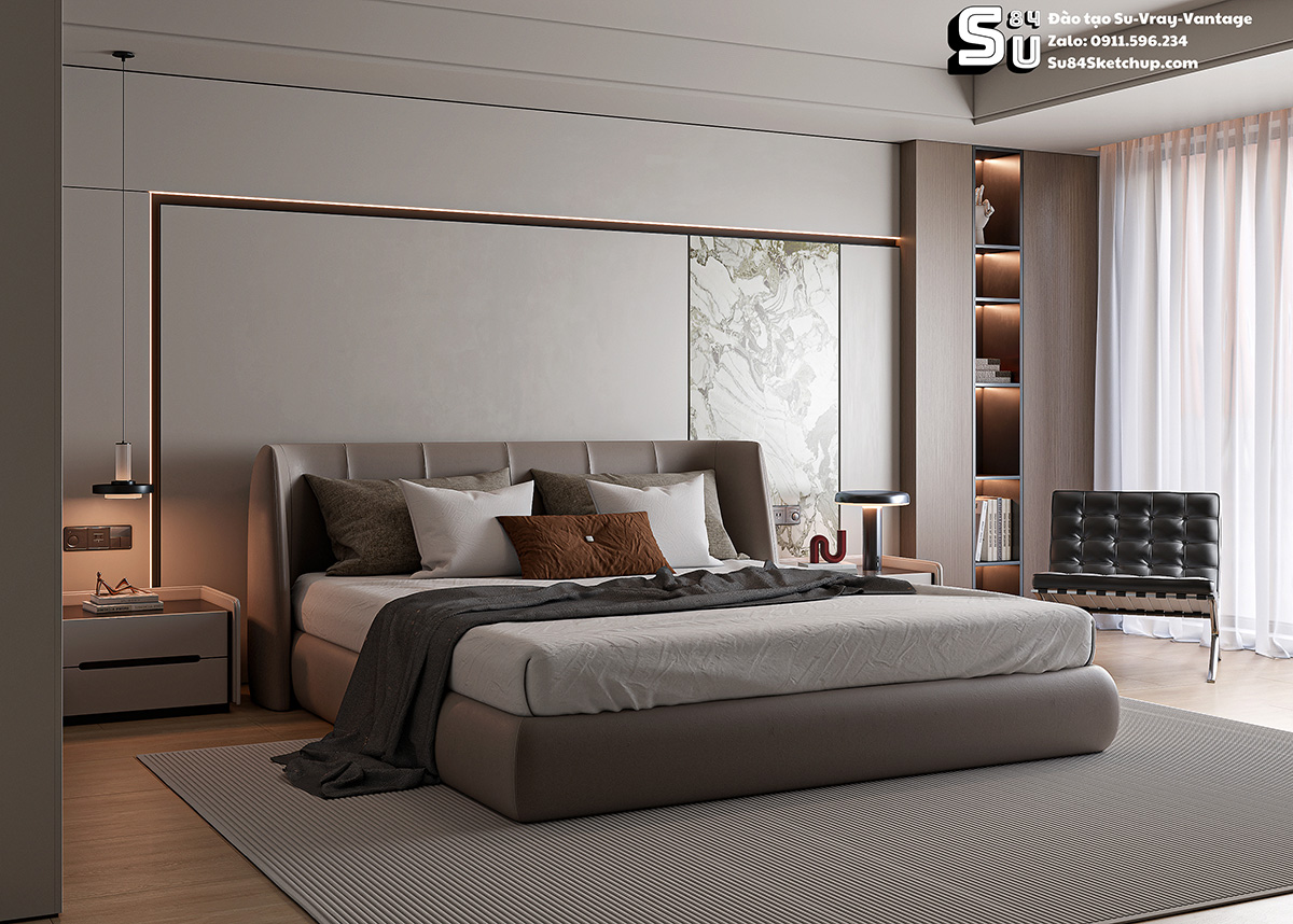 Trung tâm đào tạo Sketchup SU84 xin giới thiệu mọi người file Phòng ngủ sketchup 12 Full Setting SKetchup-Vray-Vantage gồm có 7 Scene. Mọi người có thể dùng để tham khảo cách thiết lập setting render để nâng cao trình độ của bạn, sử dụng thư viện hoặc thậm chí là lấy file công trình của bạn đặt vào để render.