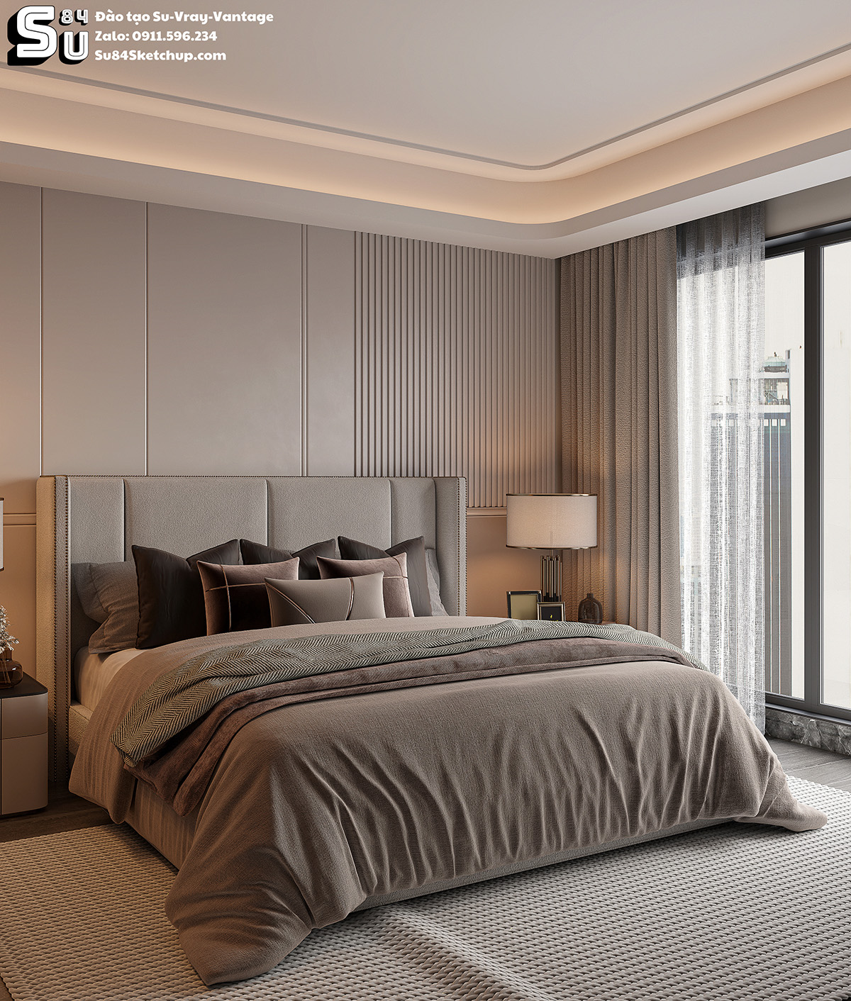 Trung tâm đào tạo Sketchup SU84 xin giới thiệu mọi người file Phòng ngủ sketchup 16 Full Setting SKetchup-Vray-Vantage gồm có 6 Scene. Mọi người có thể dùng để tham khảo cách thiết lập setting render để nâng cao trình độ của bạn, sử dụng thư viện hoặc thậm chí là lấy file công trình của bạn đặt vào để render.