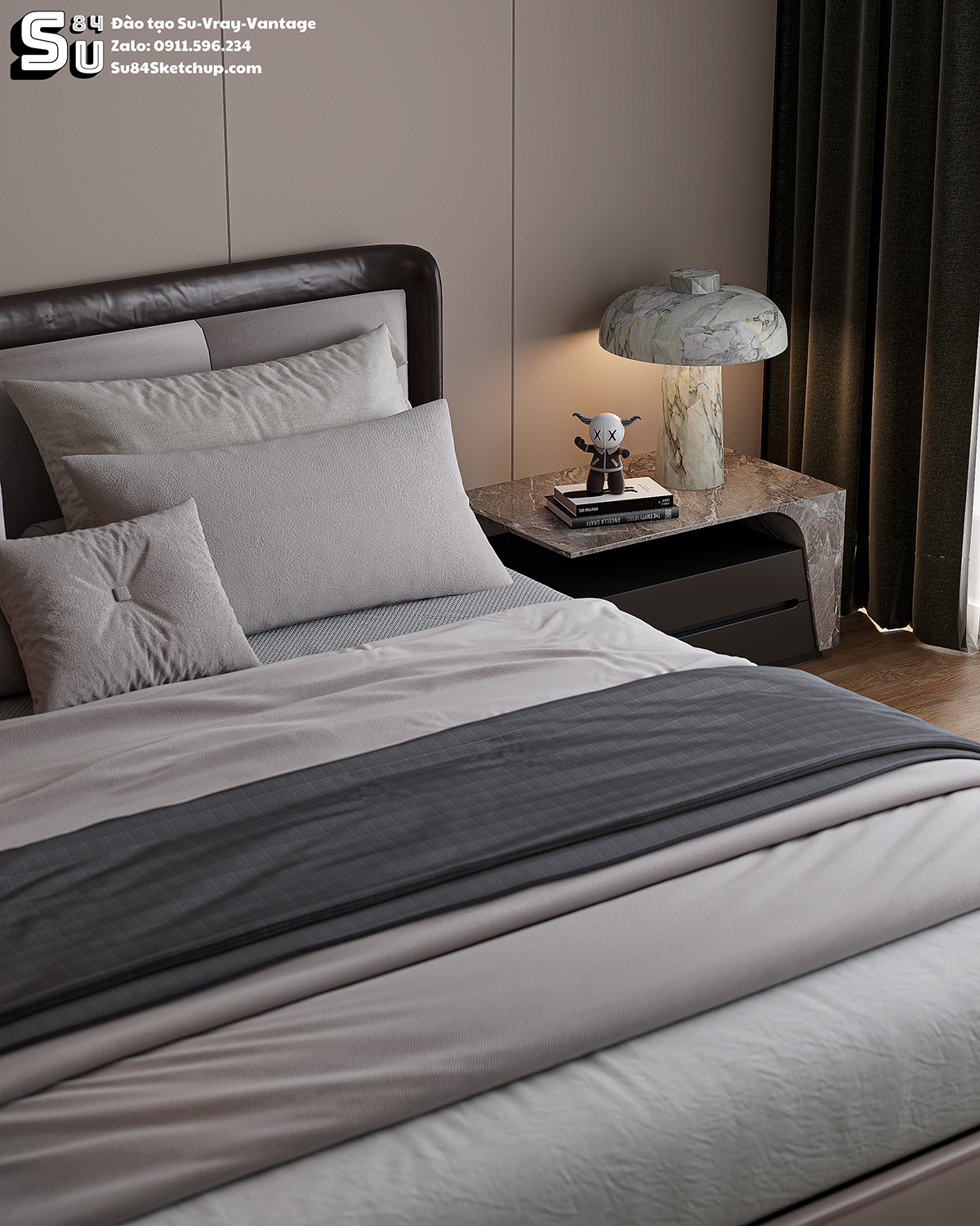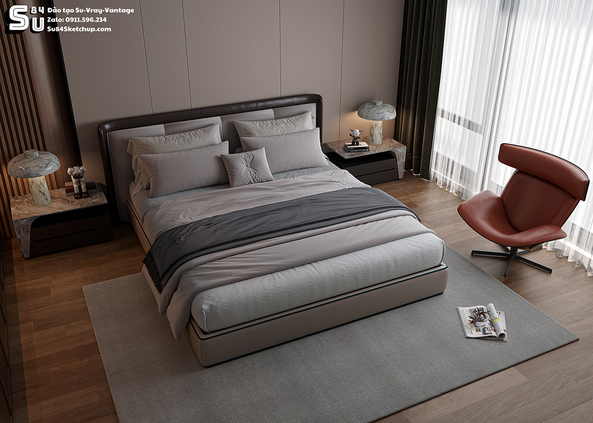 Trung tâm đào tạo Sketchup SU84 xin giới thiệu mọi người file Phòng ngủ sketchup 20 Full Setting SKetchup-Vray-Vantage gồm có 8 Scene. Mọi người có thể dùng để tham khảo cách thiết lập setting render để nâng cao trình độ của bạn, sử dụng thư viện hoặc thậm chí là lấy file công trình của bạn đặt vào để render.
